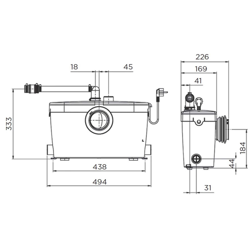 Equipped with a double-access hatch, the SANIACCESS 3 facilitates maintenance interventions in case of blockage, without the need to disassemble the device or empty the tank! This is one of the quietest lines of grinders on the market with only 46dB (A). Thanks to its smooth contours the SANIACCESS 3 easily fits into different spaces.