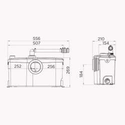 The Sanibest Pro is perfect for retrofitting a bathroom in a rented studio, in resorts, restaurants or other public places. It is a grinder consisting of several intakes that allow it to connect a sink or a washbasin, a shower and a bidet in addition to a toilet. Its exceptional evacuation performance can evacuate up to 7 meters vertically or 110 meters horizontally in a pipe 22 to 32 mm in diameter.