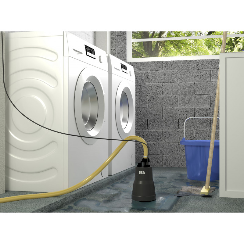 SANIPUDDLE FSP is a so-called mop pump because it leaves only a small millimeter of water that will be easily absorbed by a mop. Supplied with a 10M power cable with plug it is immediately operational once out of the box. Its lifting height of 7m makes it easy to empty cellars and garages, and its standard non-return valve and DN25 outlet hose connection complete its ease of use.